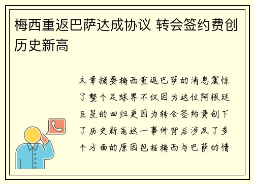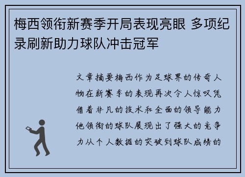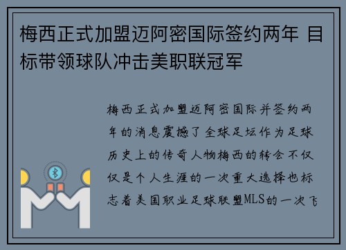 在2023年,梅西正式宣布加盟美国迈阿密国际队,这一消息震惊了全球足球界。梅西的加盟不仅对迈阿密国际队本身意味着巨大的提升,同时也为美国足球、尤其是美国职业足球大联盟(MLS)的发展带来了新的契机。随着梅西在迈阿密国际队的正式亮相,全球球迷的讨论热度持续攀升,许多人纷纷猜测这一转会将开启足球的新篇章。梅西的加入意味着更多的关注和资源将流向美国市场,这对全球足球的未来格局或许将产生深远影响。本文将从...